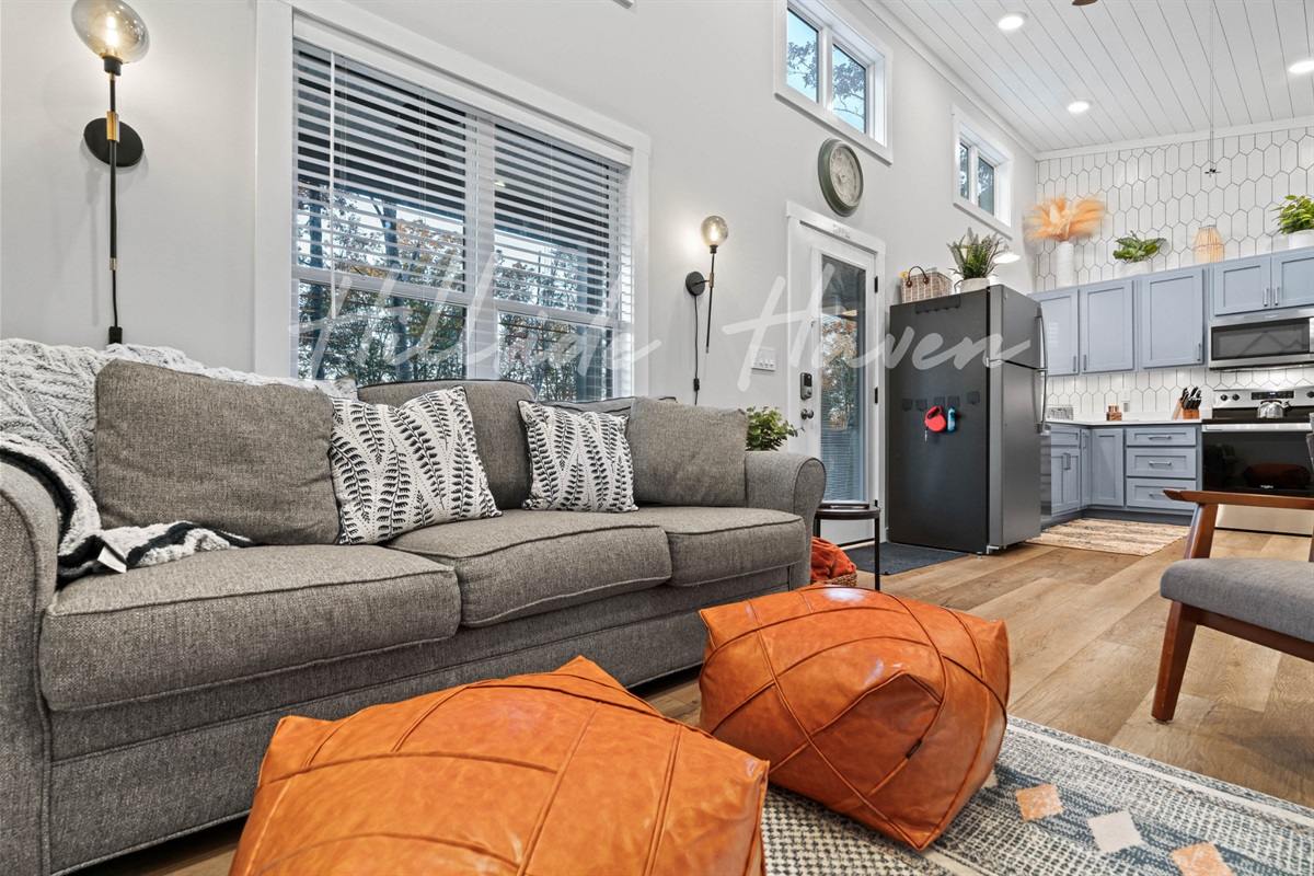 2 Bedrooms • 1 Bathroom 1 Bath • Sleeps 1-4Modern charm meets bliss near the lake at Hillside Haven, a brand-new tiny home located in the peaceful Phase 2 of The Retreat at Water’s Edge. With creamy décor and bright interiors, this tiny home brings you the joys of a full-sized experience in a perfectly compact space.
