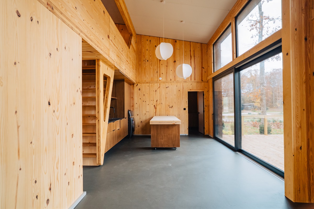 Now 90% complete and coming soon, this thoughtfully crafted home blends warm natural wood interiors, soaring ceilings, and dramatic black-framed windows that bring the forest right inside. From the moment you arrive, the clean modern lines and expansive glass façade create an unforgettable first impression, while the sun-washed interiors glow with natural pine textures and minimalist luxury.