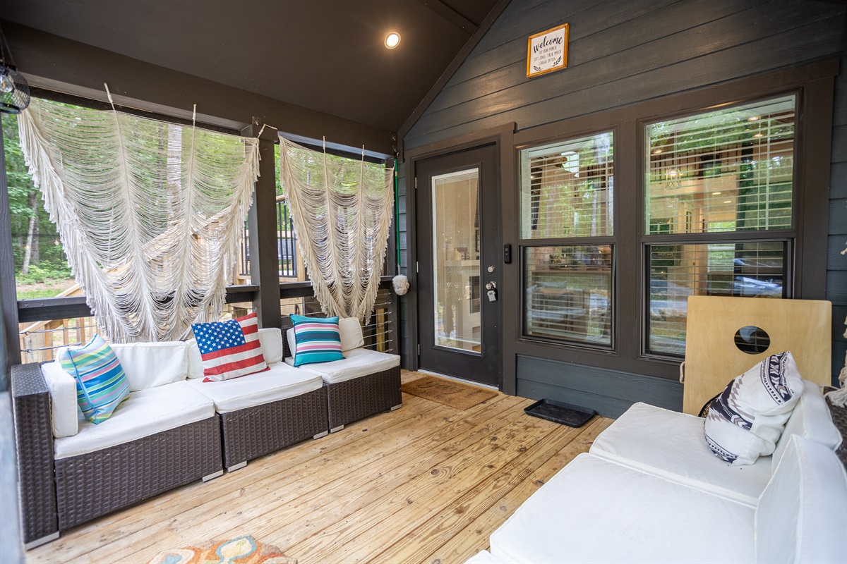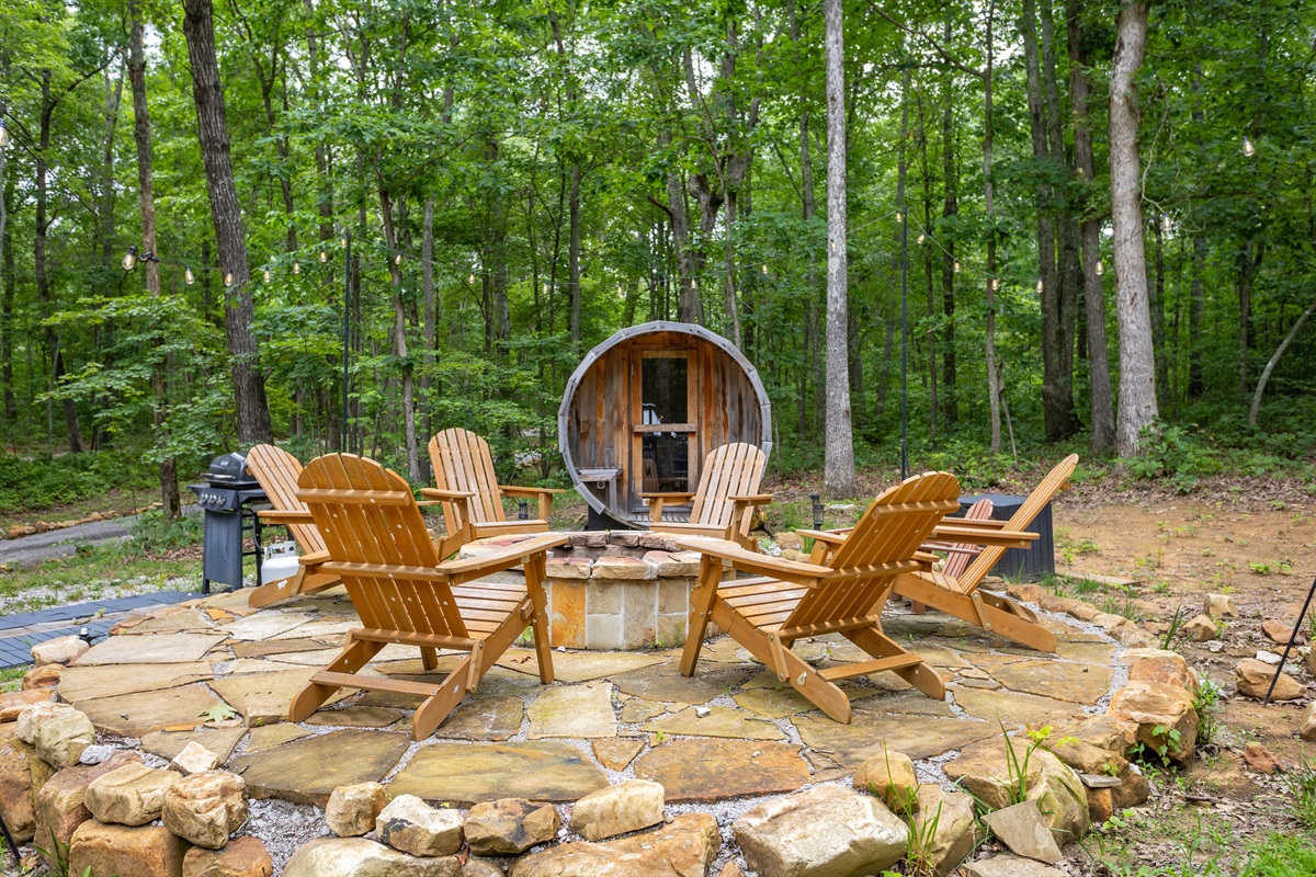 Start your day with coffee on the expansive deck as sunlight filters through the forest canopy. Unwind in your personal sauna or take a starlit soak in the oversized swim spa. Evenings are best spent around the fire pit, surrounded by Adirondack chairs and the calming sounds of nature.
