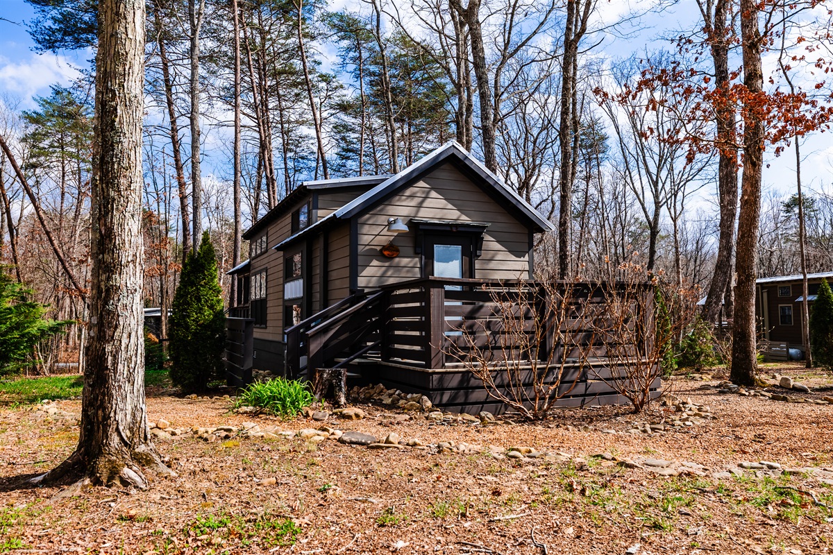 1 Bedroom • 1 Bathroom 1 Bath • Sleeps 1-6There’s no rush here. Spend your day however you choose—whether that’s a peaceful walk to the nearby waterfall, a hike through South Cumberland’s scenic trails, s'mores at the firepit, or simply relaxing on the deck with a good book.